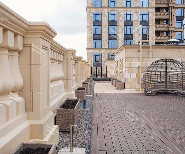 Есть возможность выхода на крышу комплекса, где можно отдыхать/ загорать. ОКНА квартиры выходят на внешнюю сторону улицы, откуда открываются потрясающие виды на Москву.