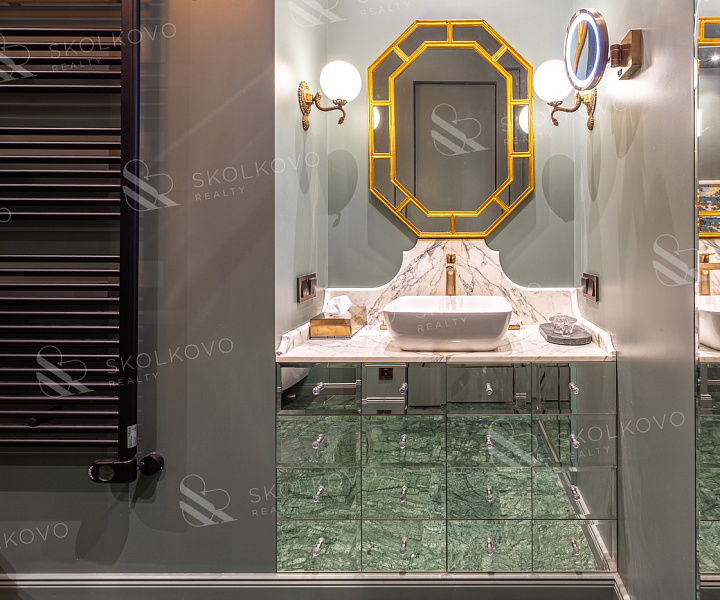 ПРЕМИАЛЬНАЯ ОТДЕЛКА: кухня Leicht, итальянская мебель Poliform, Lago, Presotto, Estetica, итальянский свет Artemide, Studio Italia, посудомойка, стиральная и сушильная машина Miele, духовой шкаф/пароварка Neff, индукционная варочная панель Bosh, сантехника Jacob Delafon, унитаз Vitra с функцией биде(в небольшом с/у), паркетная доска - американский орех, премиальный керамогранит фабрики Varmora.