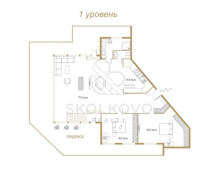 * Планировка: гардеробные комнаты, 3 санузла, кухня-гостиная, изолированные просторные комнаты