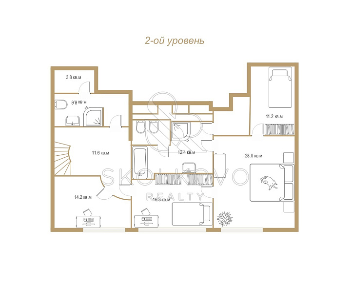 Три спальни + три с/у санузла с сауной обеспечат максимальное удобство и функциональность для большой семьи.