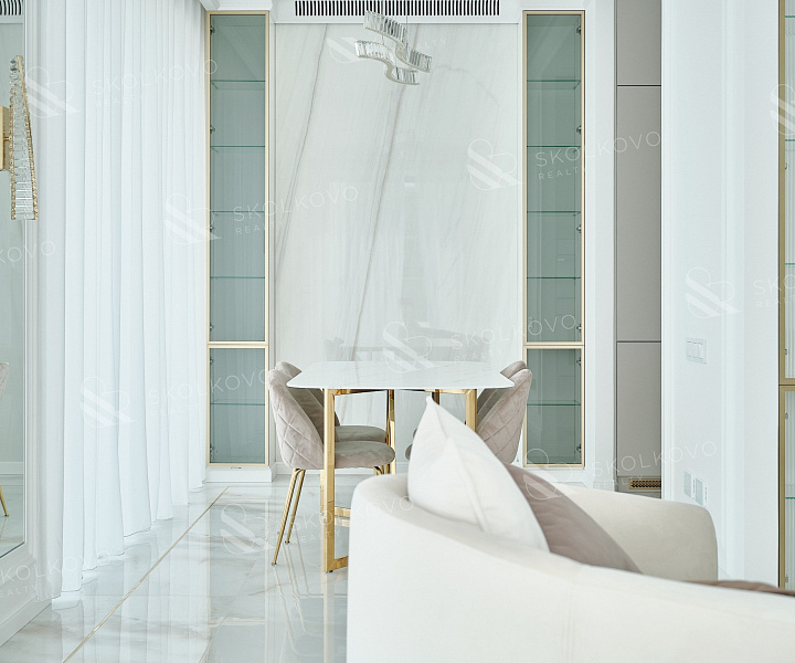 Квартира полностью укомплектована всей необходимой бытовой техникой и оснащена центральной системой кондиционирования, звукоизоляцией и даже винным шкафом.