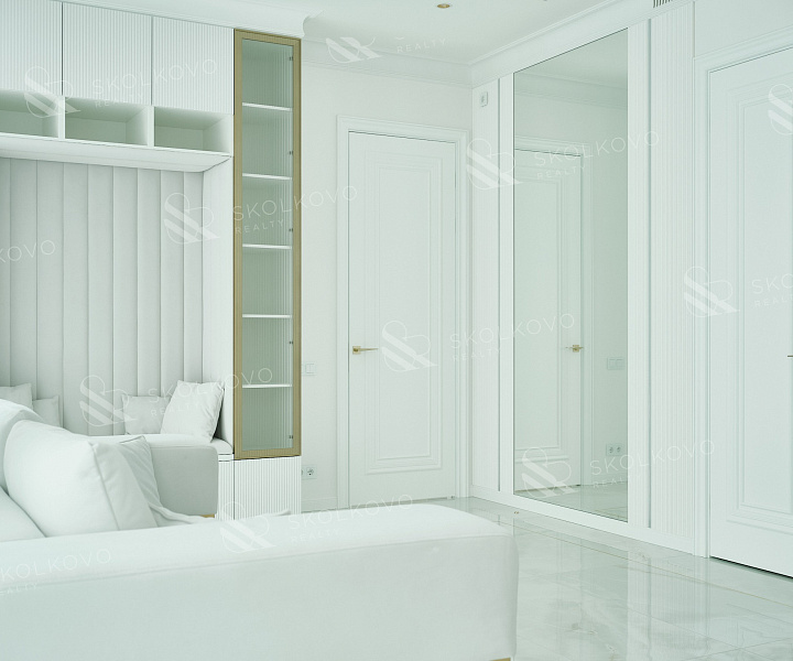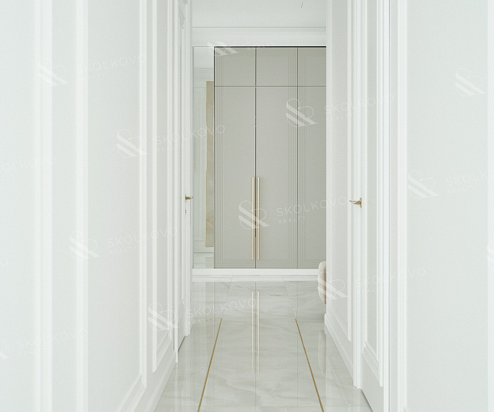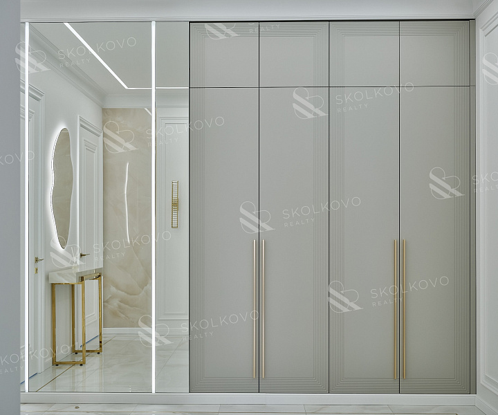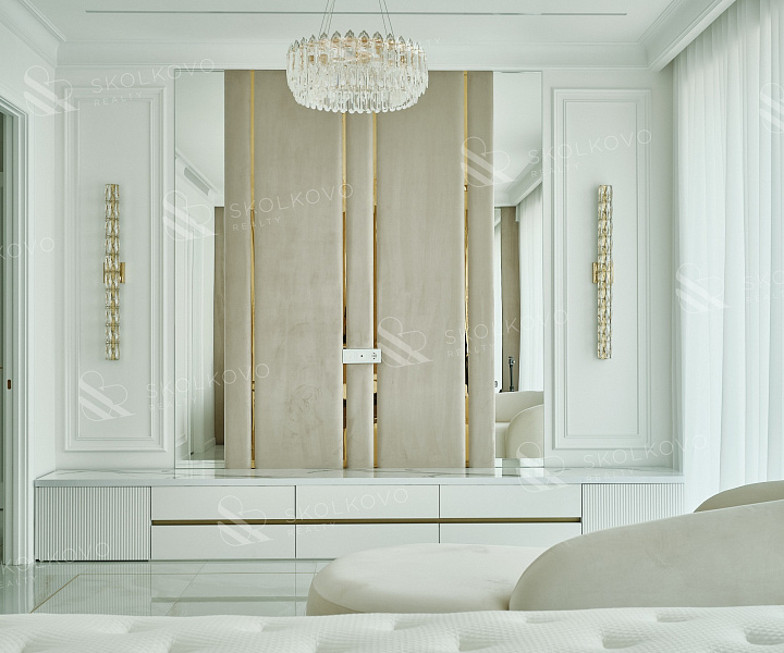 Эта квартира, площадью 160 м², расположена на 31 этаже корпуса R5 и воплощает в себе эстетическое совершенство и функциональность.