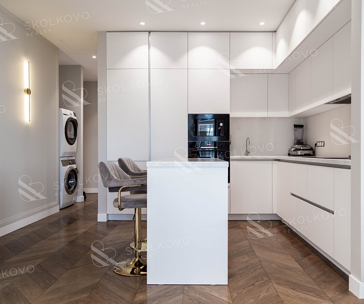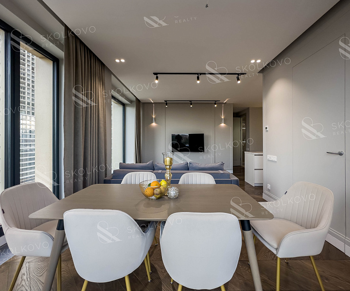 Квартира предлагается с полной отделкой, включая стильную мебель и все необходимые элементы кухонного и санитарного назначения, что позволяет вам без лишних затрат сразу же насладиться комфортом нового дома.