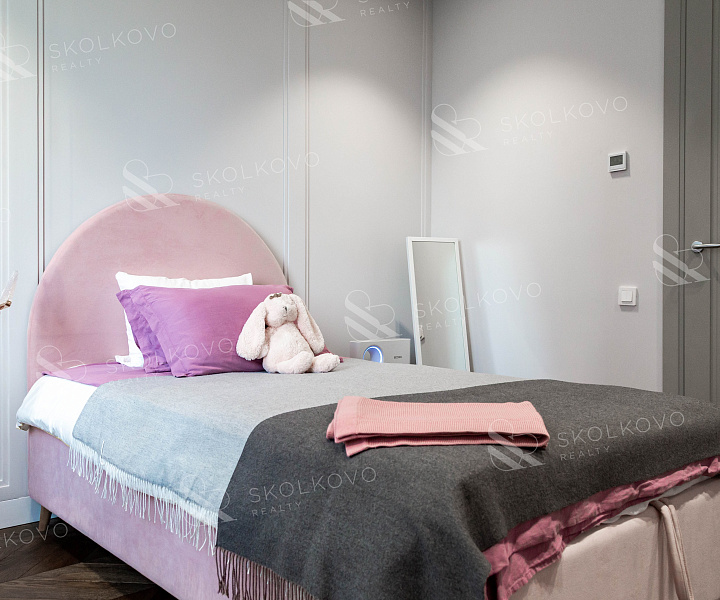 Кухня-гостиная, мастер-спальня с собственным санузлом, детская спальня, гардеробная, ванная комната и холл.