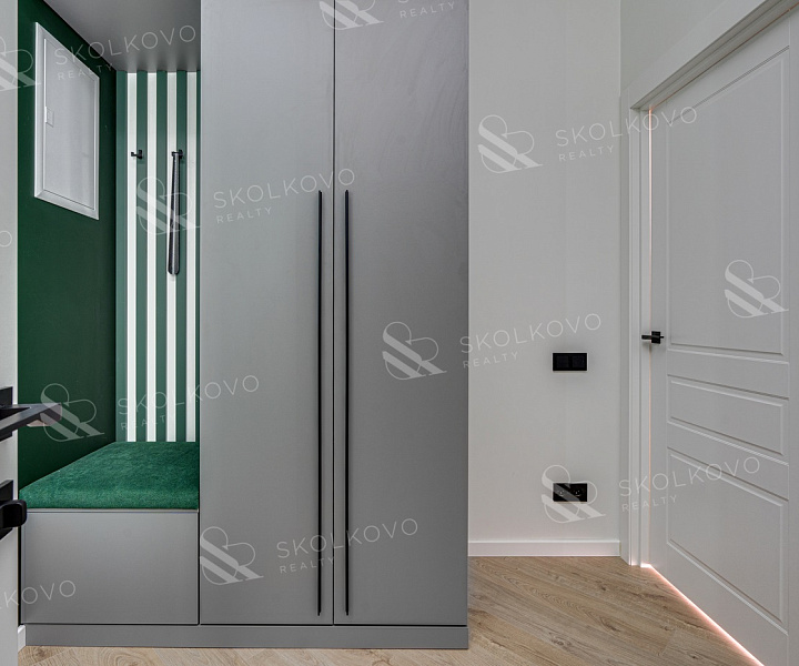 Удобная прихожая с шкафами для верхней одежды и дополнительными отделениями обеспечивает порядок и организованность.