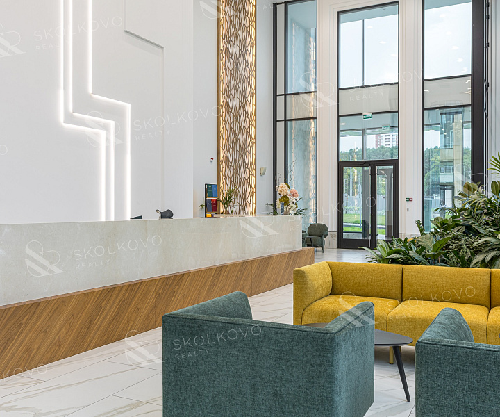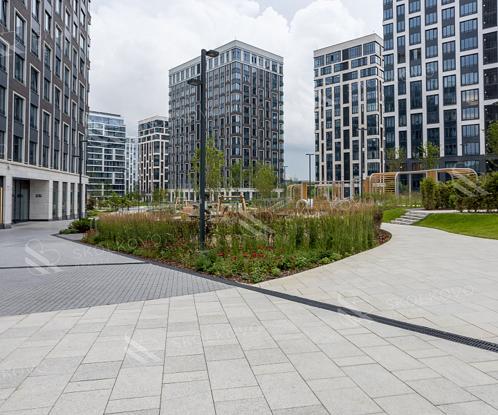 Закрытая территория с роскошным ландшафтным дизайном и современными зонами ожидания.