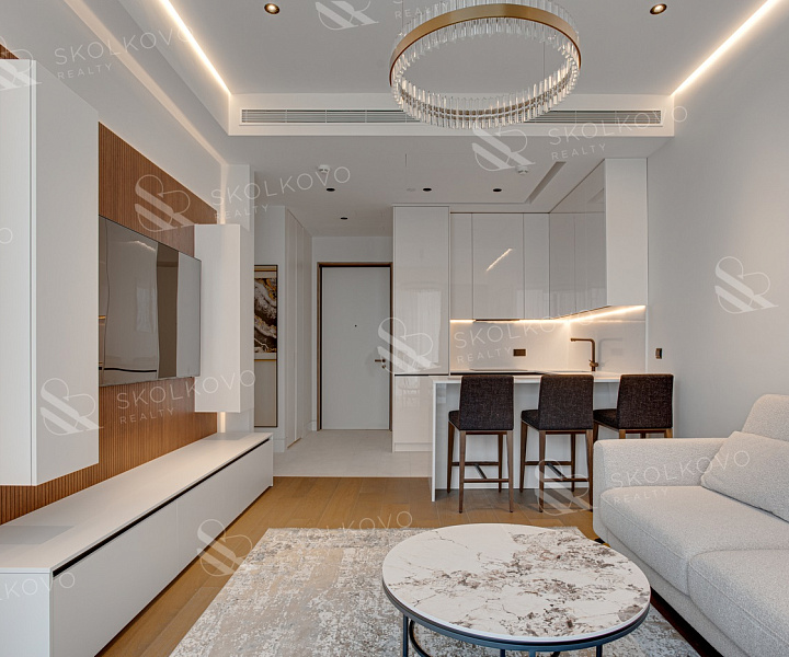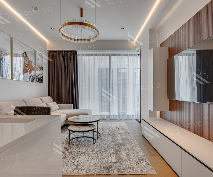 Квартира отличается дорогим дизайнерским ремонтом в стиле Модерн, выполненным с использованием высококачественных и модных материалов. Продуманный до мелочей интерьер создает атмосферу уюта и роскоши.