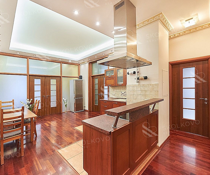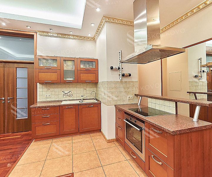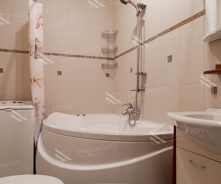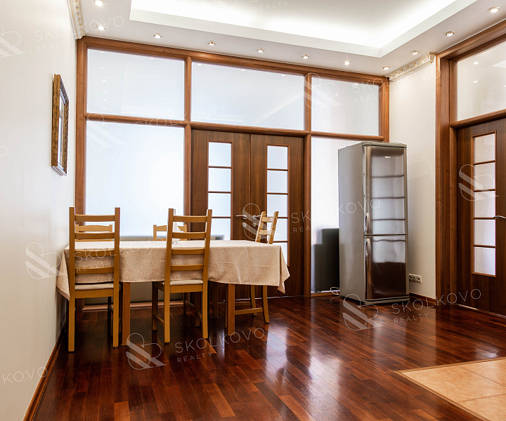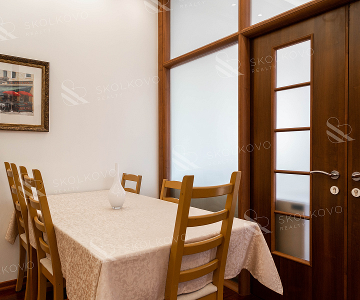 Квартира оформлена в современном стиле с использованием качественных материалов в светлых тонах. Просторная кухня-столовая станет идеальным местом для семейных обедов и встреч с друзьями.