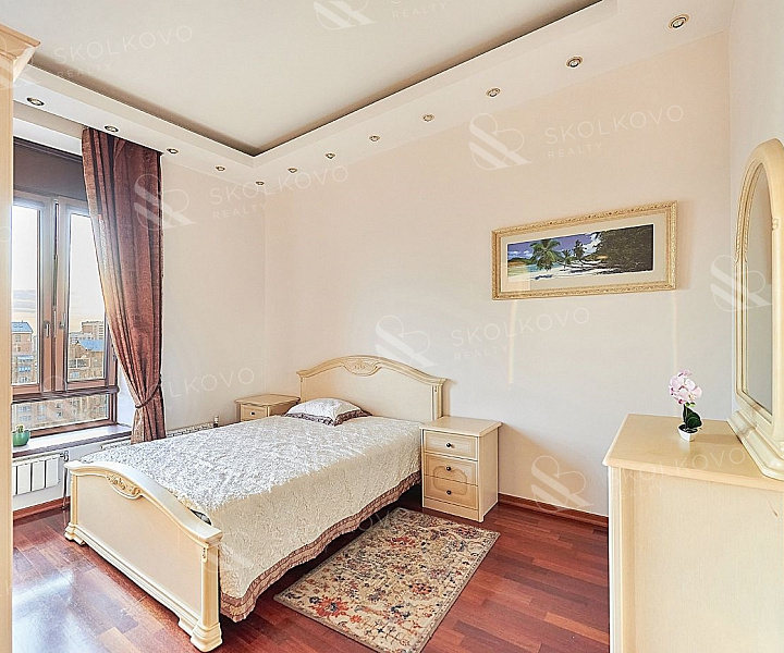 Внутри квартиры вы найдете стильный паркет из натурального красного дерева, а также всю необходимую бытовую технику, включая посудомоечную и стиральную машину с сушкой, духовку и холодильник. Совмещенный санузел оснащен джакузи, что добавляет еще больше комфорта.