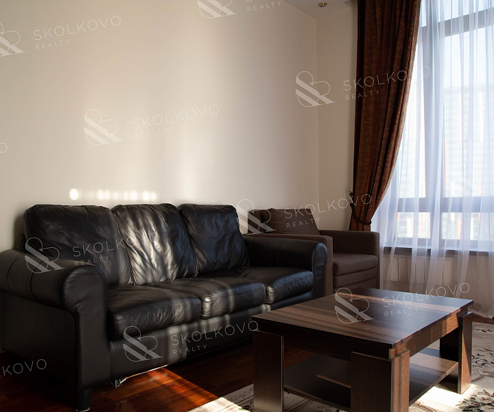 Квартира полностью меблирована, включая мебель на кухне и в комнатах.