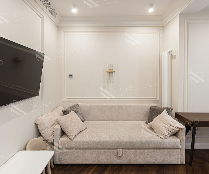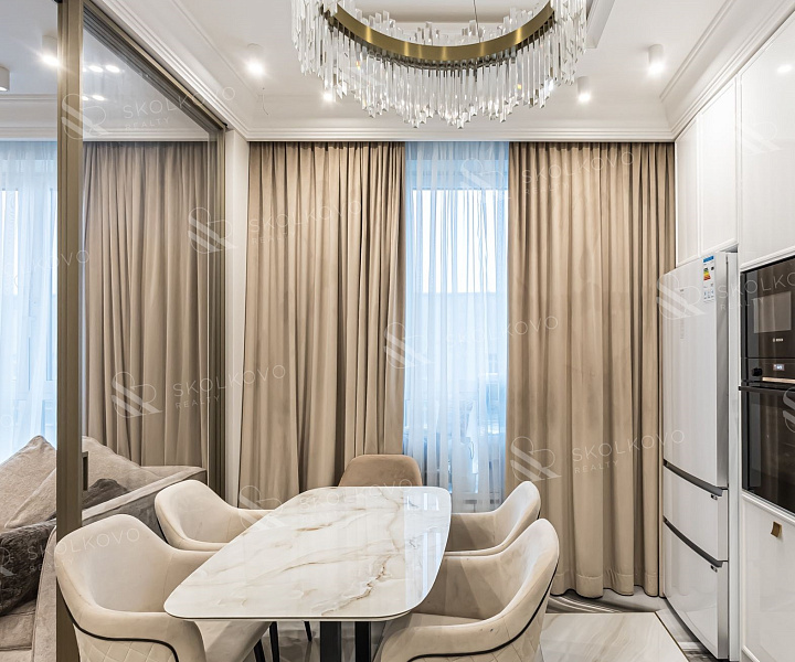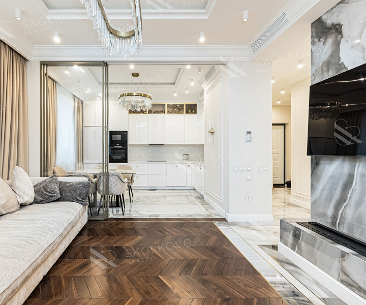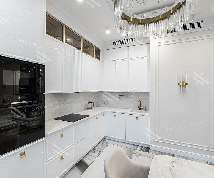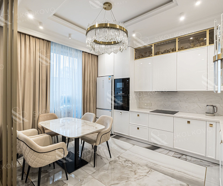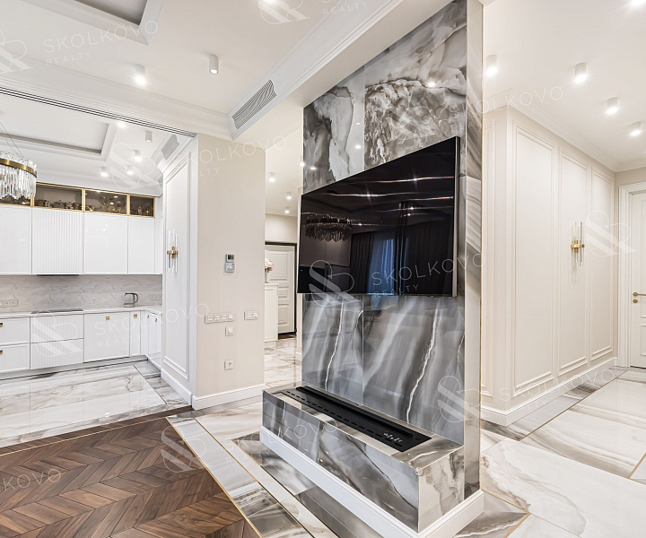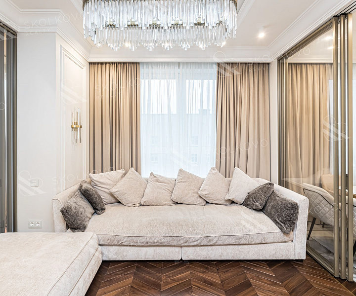 Квартира выполнена в элегантном стиле современной классики.