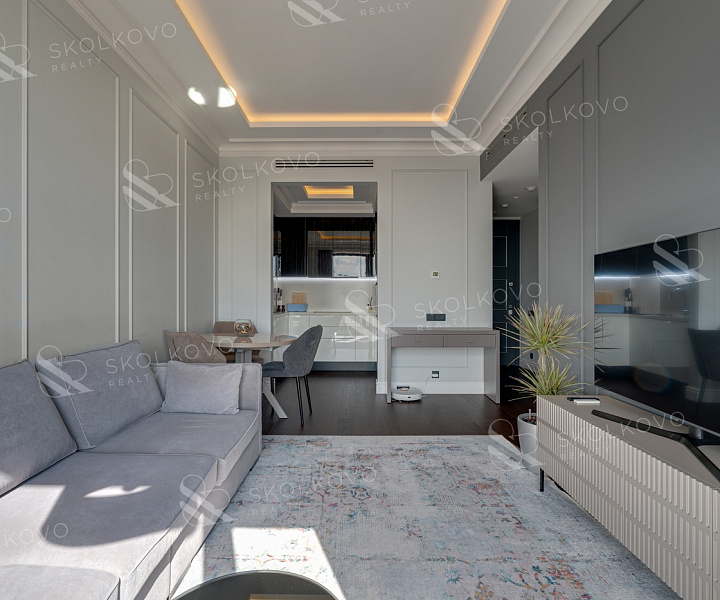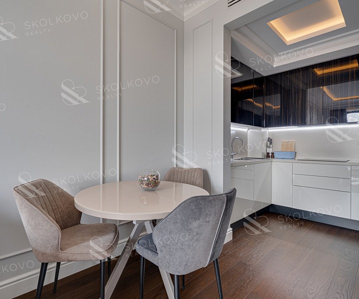 Каждый элемент мебели и техники представляет премиальные бренды, включая встроенную систему кондиционирования, теплые полы, посудомоечную машину и систему фильтрации воды.