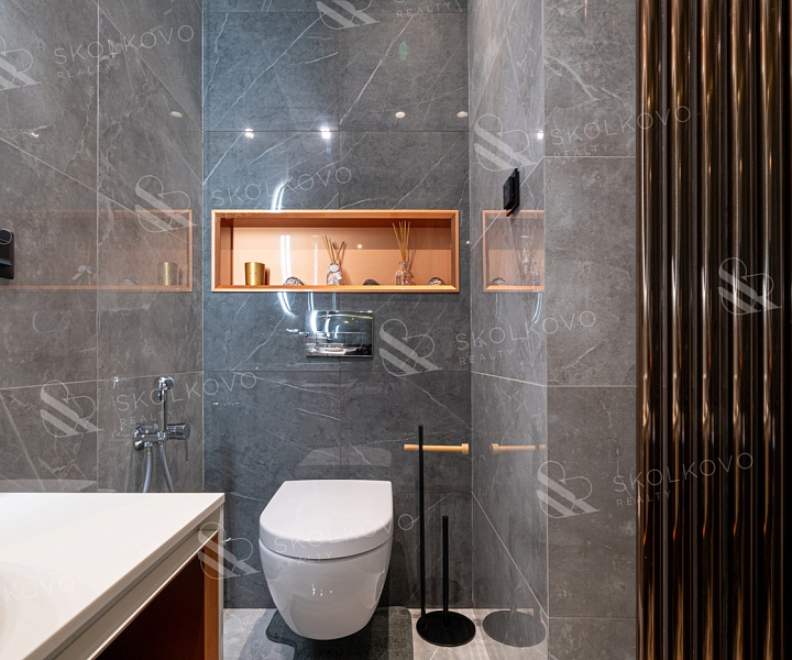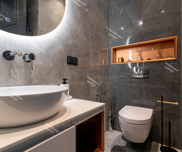 Современный санузел с высококачественной отделкой, который обеспечивает максимальный комфорт.