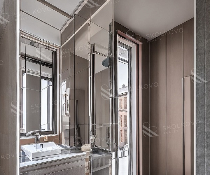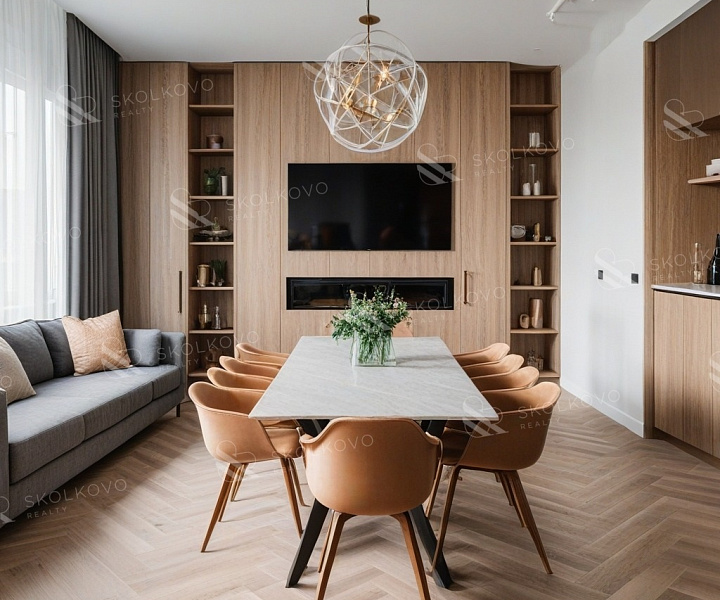- Использование только высококачественных материалов в отделке: инженерная доска, керамогранит, шпон, а также современная техника **Miele** и сантехника **Villeroy & Boch**, что подчеркивает ваш статус и приверженность к качеству
