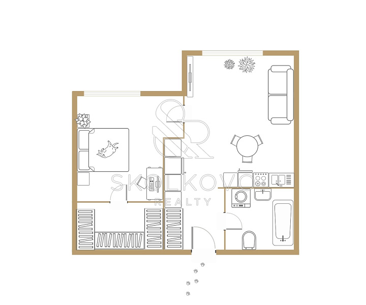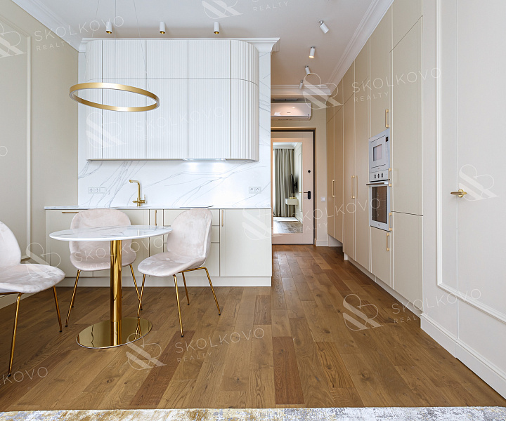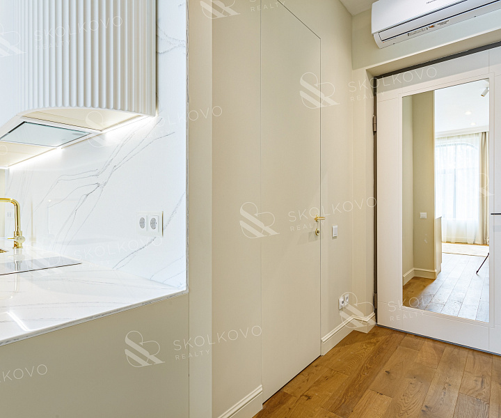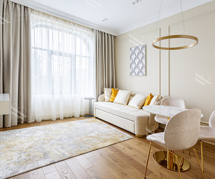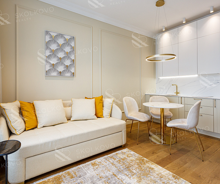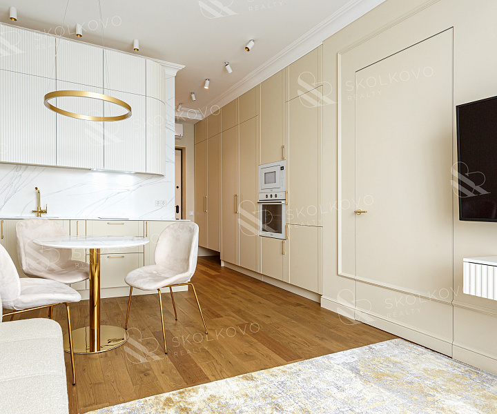 Планировка: кухня объединённая с гостиной, спальня с гардеробной, совмещённый санузел. Полностью меблирована и укомплектована для комфортного проживания.