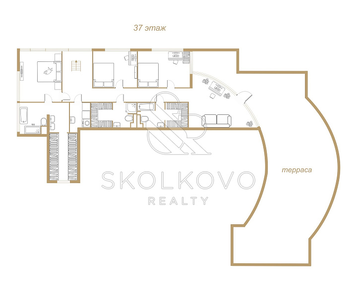Это единственный пентхаус с двумя террасами в комплексе, с возможностью легального увеличения жилой площади и без отделки — вы получаете возможность реализовать свои дизайнерские идеи.