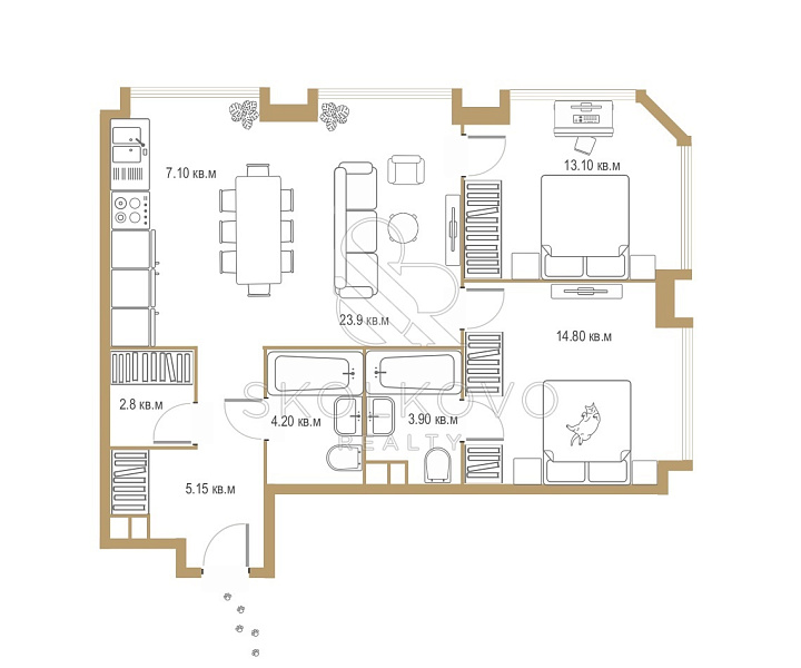 Предлагаем вашему вниманию трехкомнатную квартиру премиум-класса площадью 75 м² в жилом комплексе Hide от надежного застройщика MR Group.