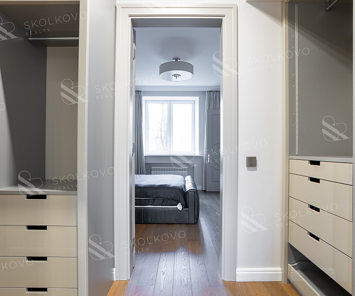 Мастер спальню с удобным гардеробом и собственным санузлом.
