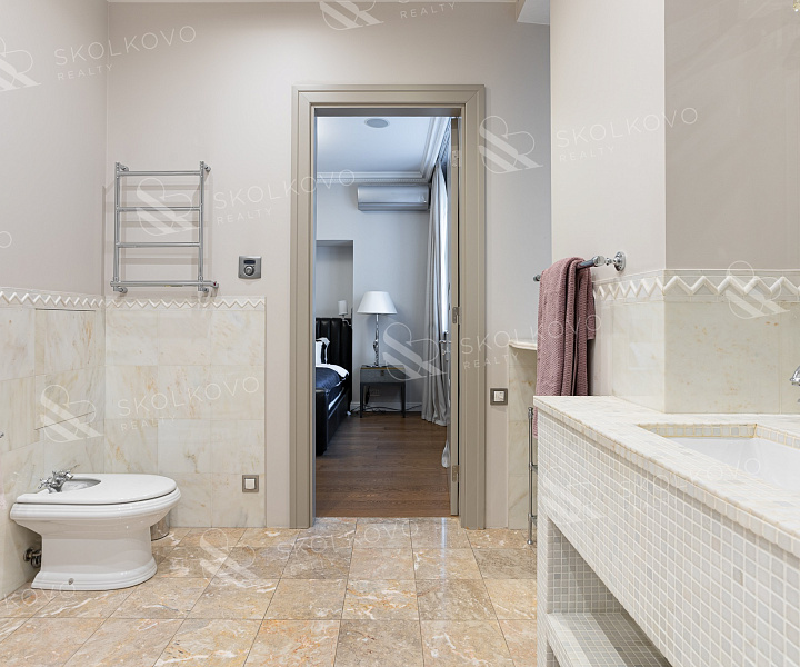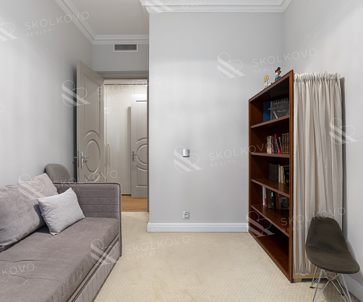 Изолированную спальню, кабинет для работы и второй санузел, расположенный рядом с спальнями и кабинетом для максимального удобства.