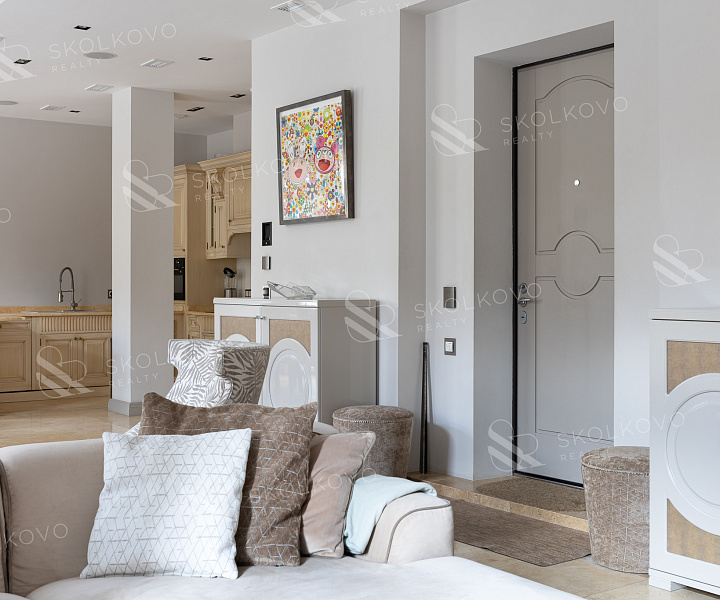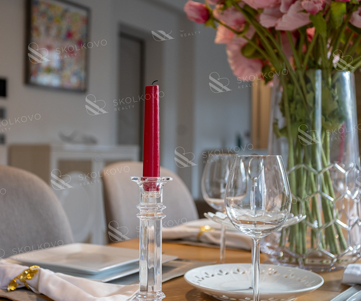 Внутреннее пространство выполнено в соответствии с авторским дизайн-проектом, каждая комната полностью меблирована и готова к проживанию.