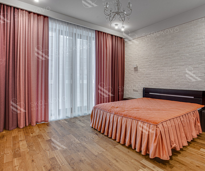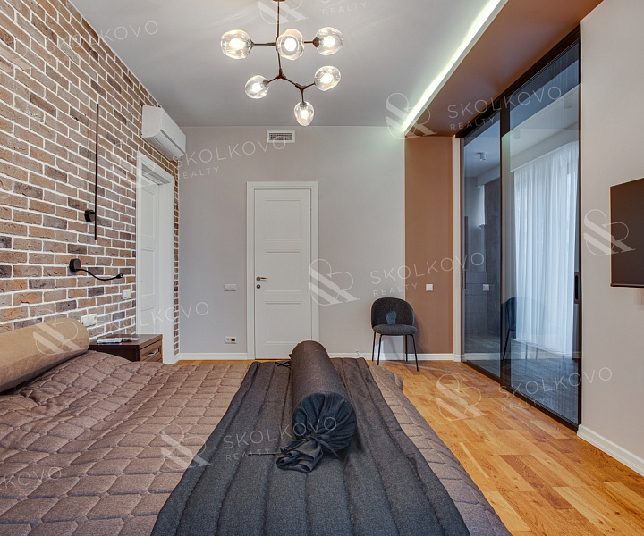 Основная спальня впечатляет своей элегантностью: она оборудована большой двуспальной кроватью и выделенной зоной с просторными встроенными шкафами, что создаёт уникальное ощущение уединения благодаря раздвижным стеклянным дверям. Две дополнительные спальни оборудованы комфортными кроватями, а в детской спальне предусмотрено рабочее место с функциональным столом, что идеально подходит как для учебы, так и для работы.
