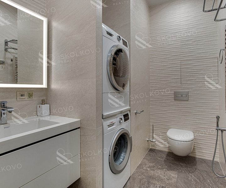 Квартира дополнительно предлагает два полных санузла: гостевой с душевой кабиной и большой санузел с ванной, расположенный рядом с основной спальней. Также имеется удобная гардеробная комната, тёмная комната и вместительные шкафы для хранения вещей. Возможность аренды машиноместа в подземном паркинге создаёт дополнительные преимущества.