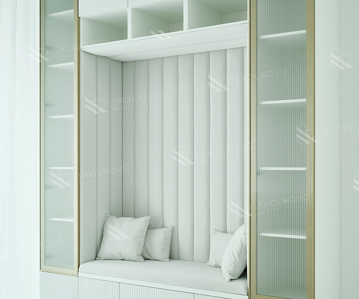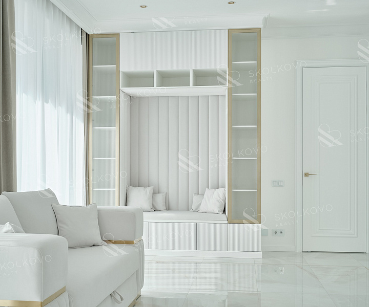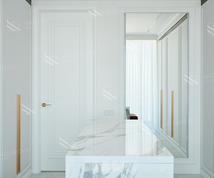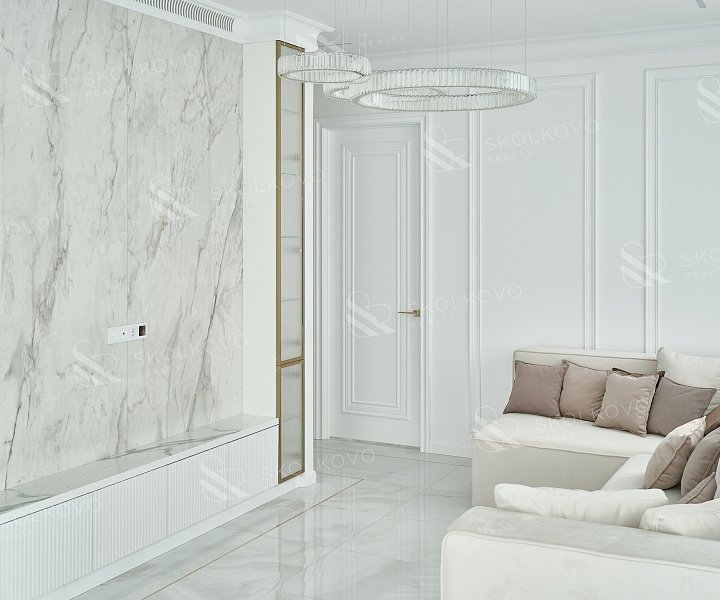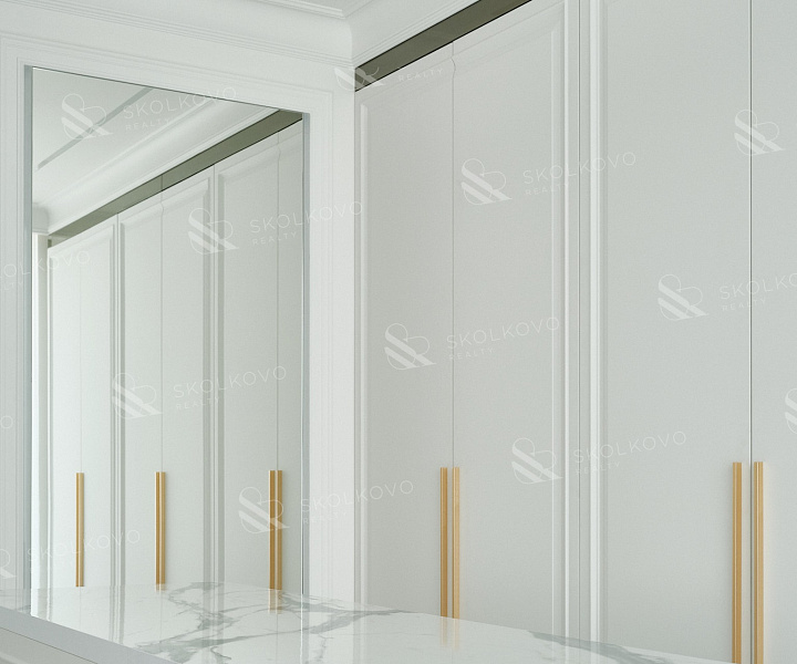 Эта квартира, площадью 160 м², расположена на 31 этаже корпуса R5 и воплощает в себе эстетическое совершенство и функциональность.
