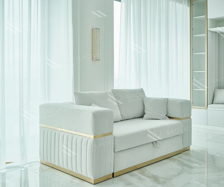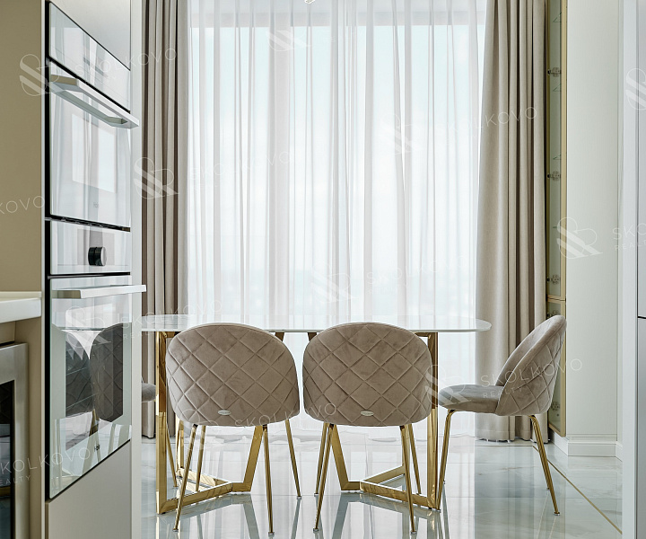 Панорамные окна наполняют пространство естественным светом, предлагая потрясающие виды на современный архитектурный шедевр — «Триумф Палас».