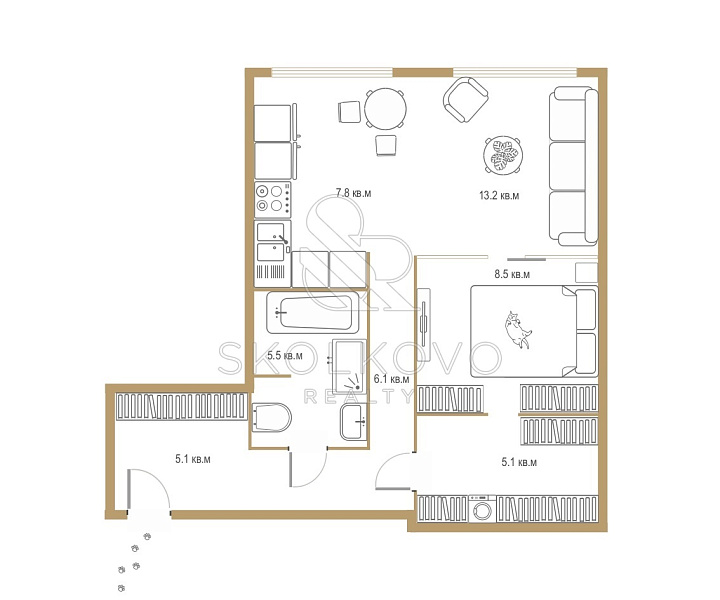 2-х комнатная квартира площадью 53 кв.м.