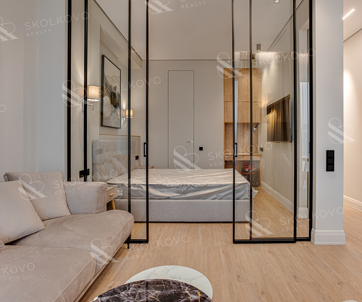 Квартира оборудована умной системой дома, что обеспечит вам максимальный комфорт и удобство. Просторная ванная комната с душевой зоной, разделенной стеклянной перегородкой, создает атмосферу расслабления.