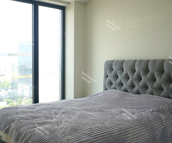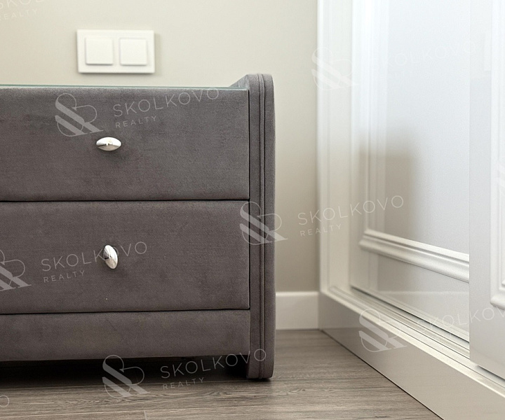 Квартира отличается продуманной планировкой, включающей просторную кухню-гостиную с панорамными окнами, которые наполняют пространство естественным светом, а также уютную спальню, дополненную большой гардеробной.