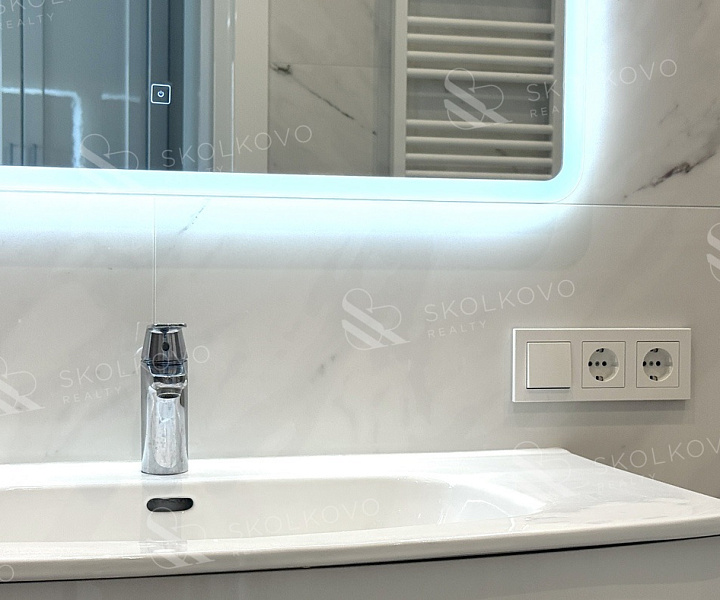 Современный санузел с высококачественной отделкой обеспечивает максимальный комфорт.