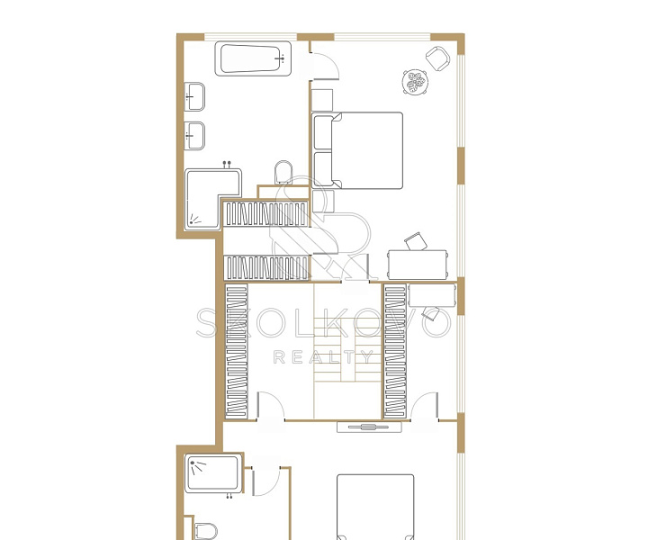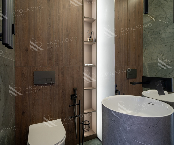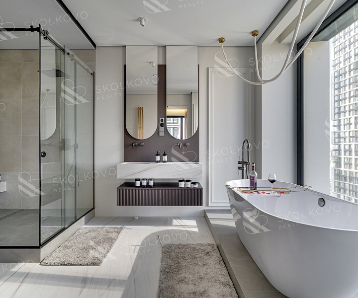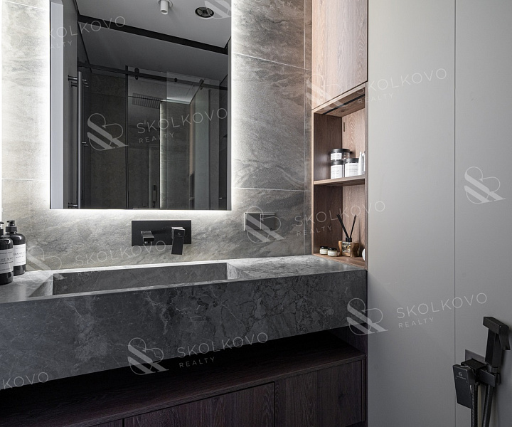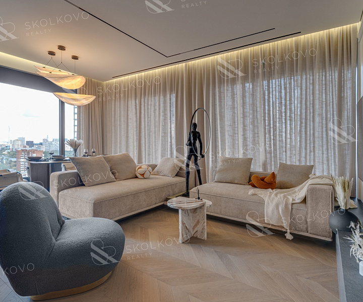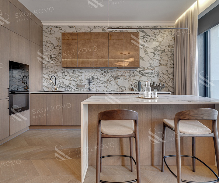 В отделке использованы лучшие материалы — инженерная доска, керамогранит, шпон, а также техника Miele и сантехника Villeroy & Boch. Каждая деталь подчеркивает ваш статус и привязанность к качеству.