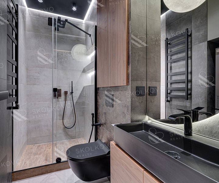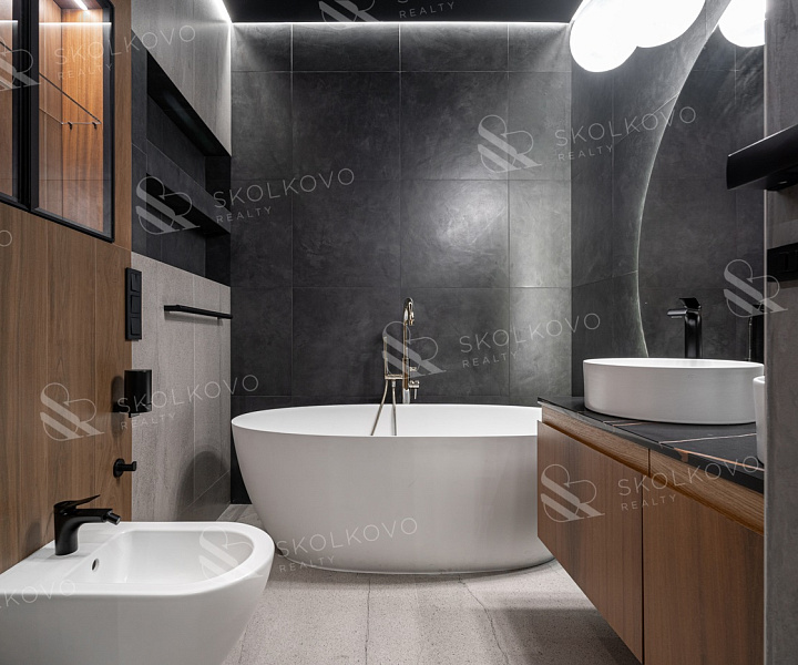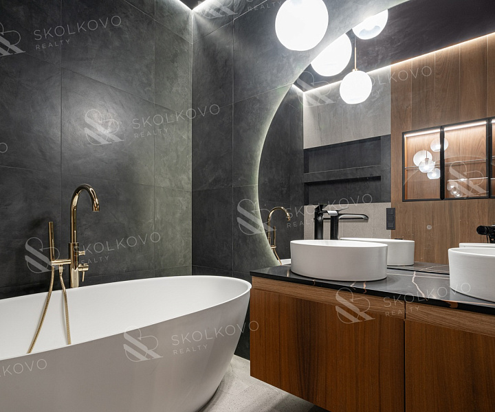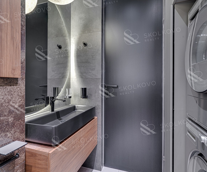 Элегантные ванные комнаты оборудованы итальянскими и испанскими санитарными изделиями GSI Ceramica и Bossini Cosmo, а для вашего удобства установлены теплые полы и дополнительные удобства, такие как стиральная и сушильная машины Asko.