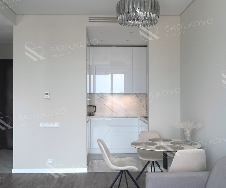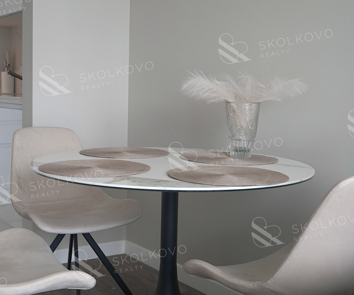 Квартира отличается продуманной планировкой, включающей просторную кухню-гостиную с панорамными окнами, которые наполняют пространство естественным светом, а также уютную спальню, дополненную большой гардеробной.