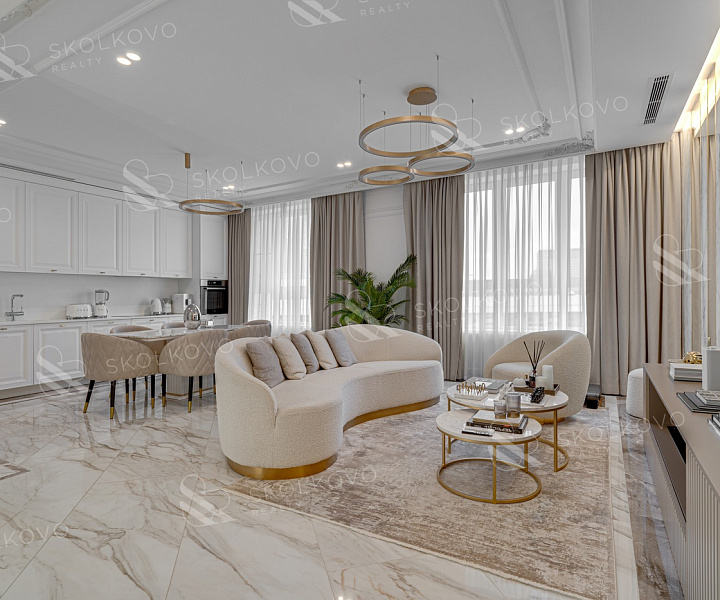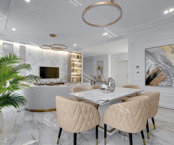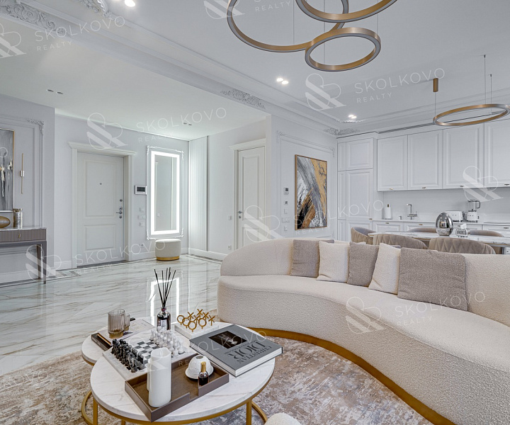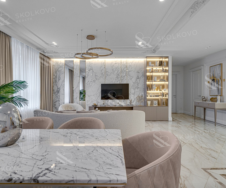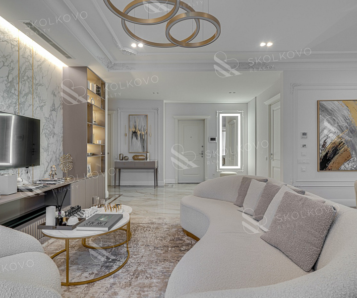 Квартира выполнена в дизайнерском стиле с высококачественными отделочными материалами: