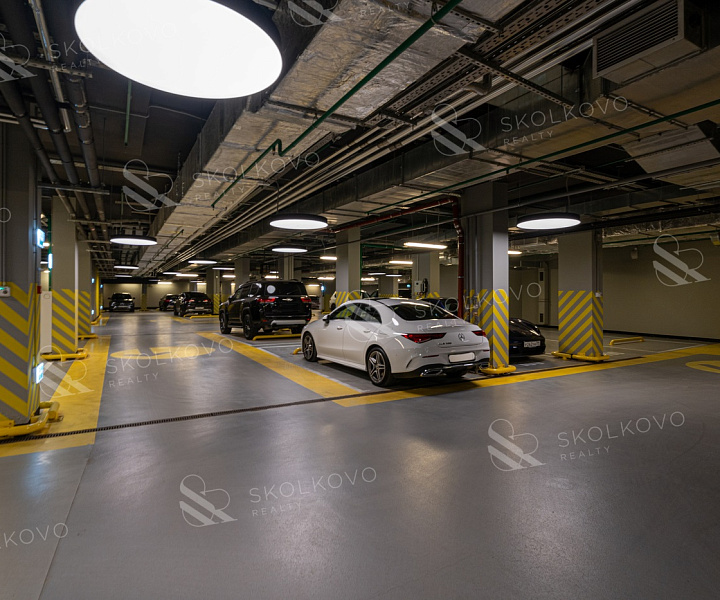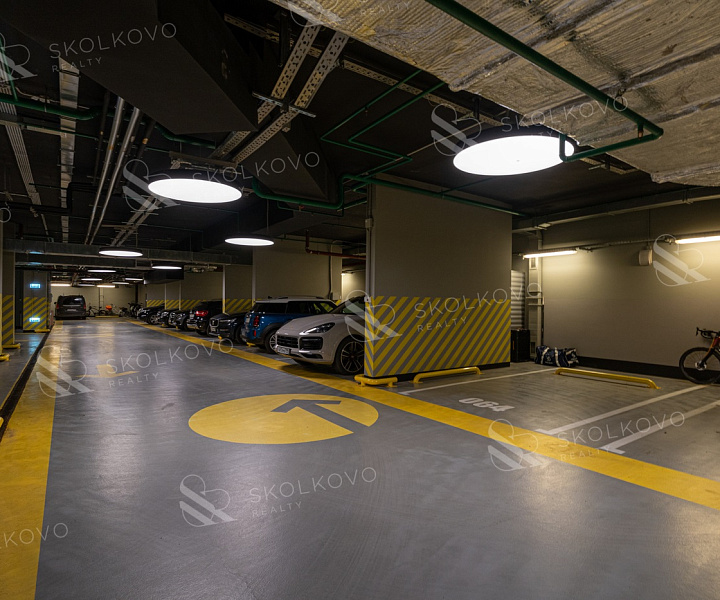 Двухуровневый отапливаемый паркинг вместит до 120 автомобилей, а также располагает кладовыми для хранения вещей.
