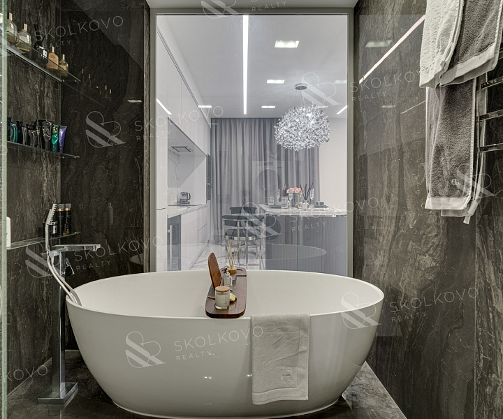 В наличии: Новый ремонт, Стиральная машина, Полы с подогревом, Кондиционер, Электрические шторы,