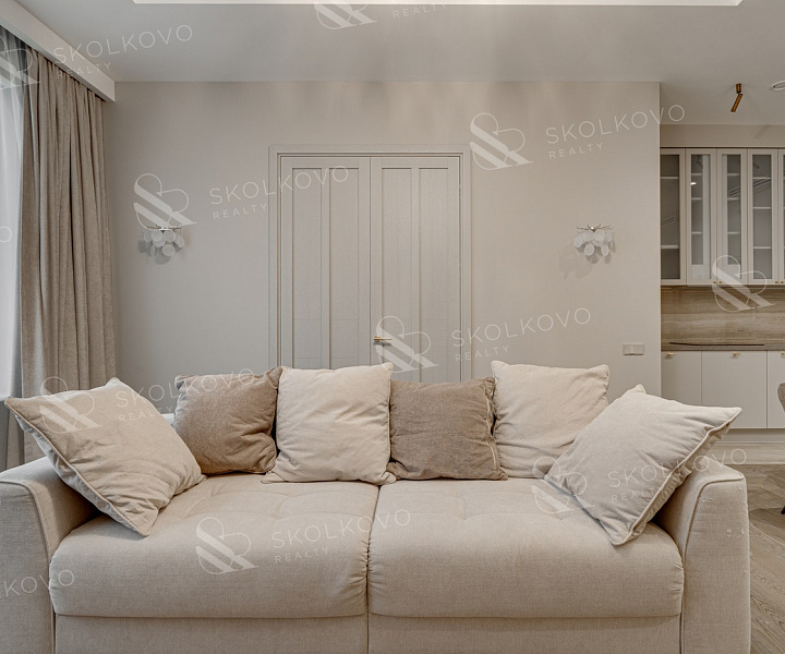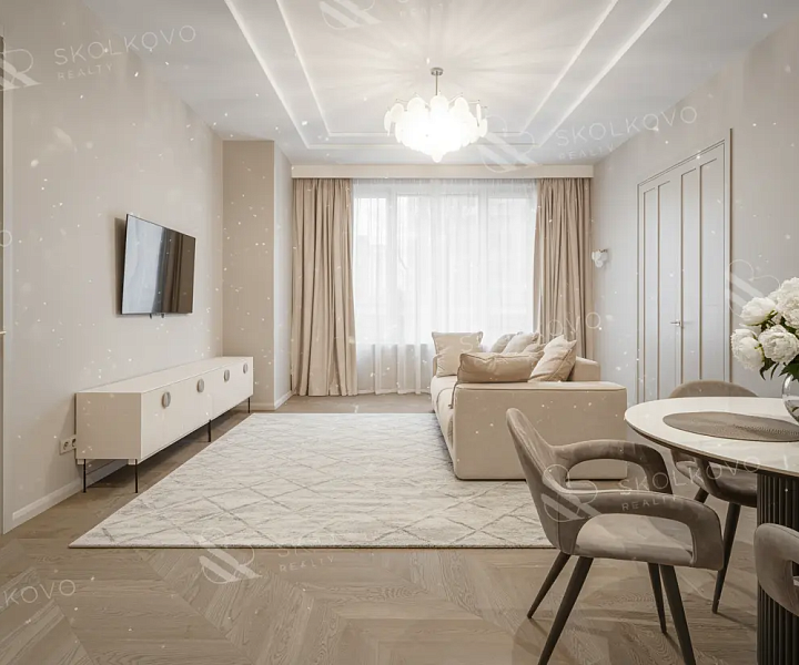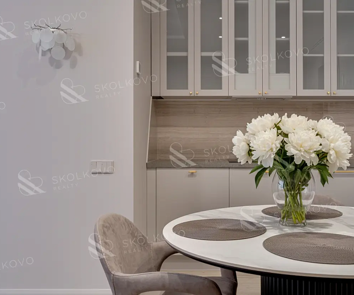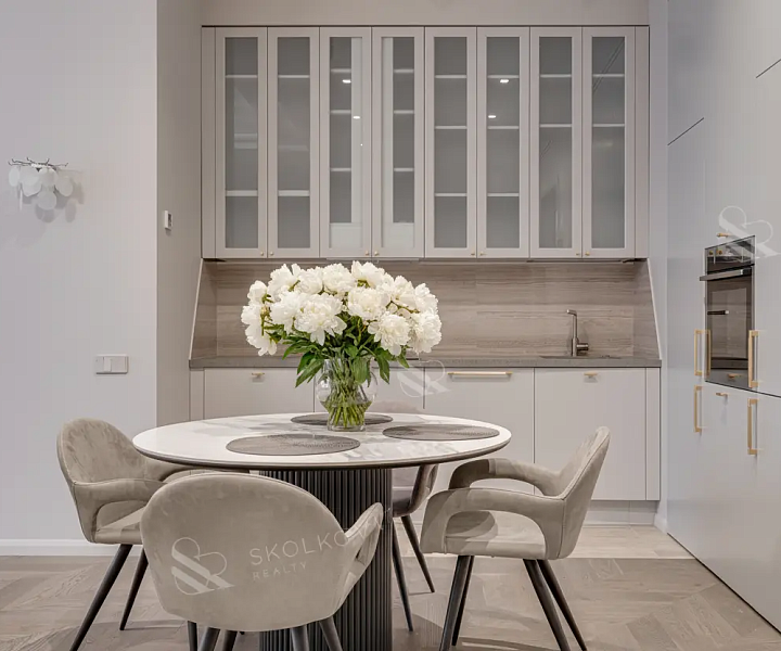 Просторную кухню-гостиную, идеально подходящую для дружеских встреч и семейных ужинов.