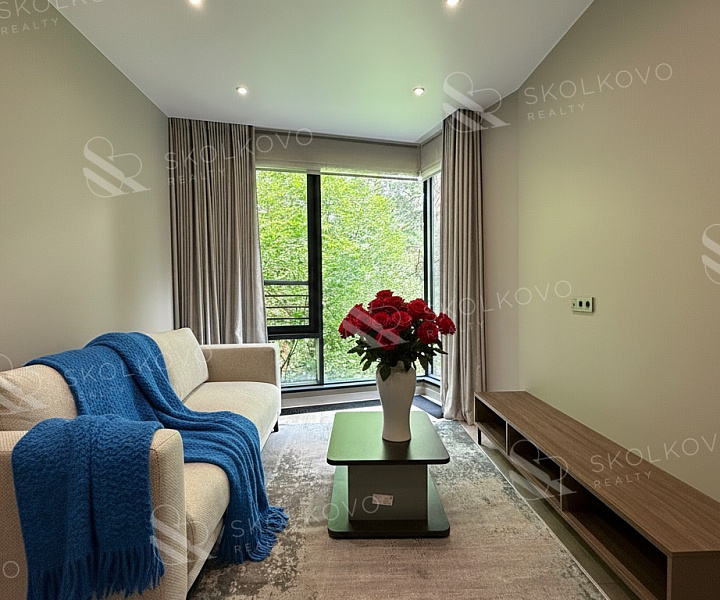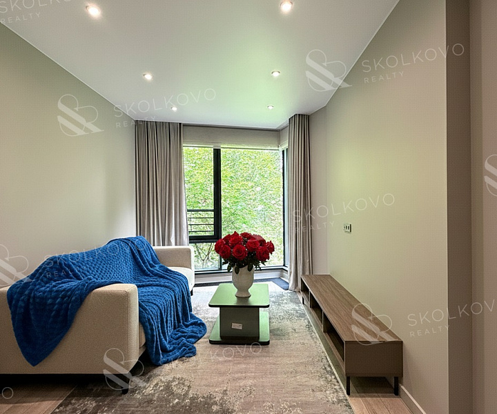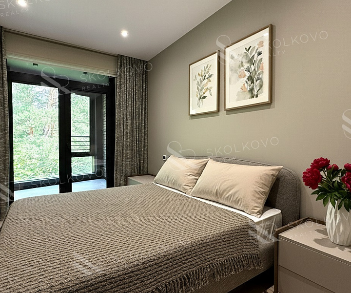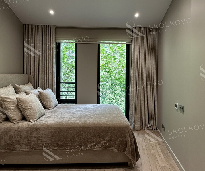 В квартире высокие потолки (3 метра), панорамные окна, интеллектуальные системы очистки воздуха и отделка из натуральных материалов создают атмосферу уюта и благородства.