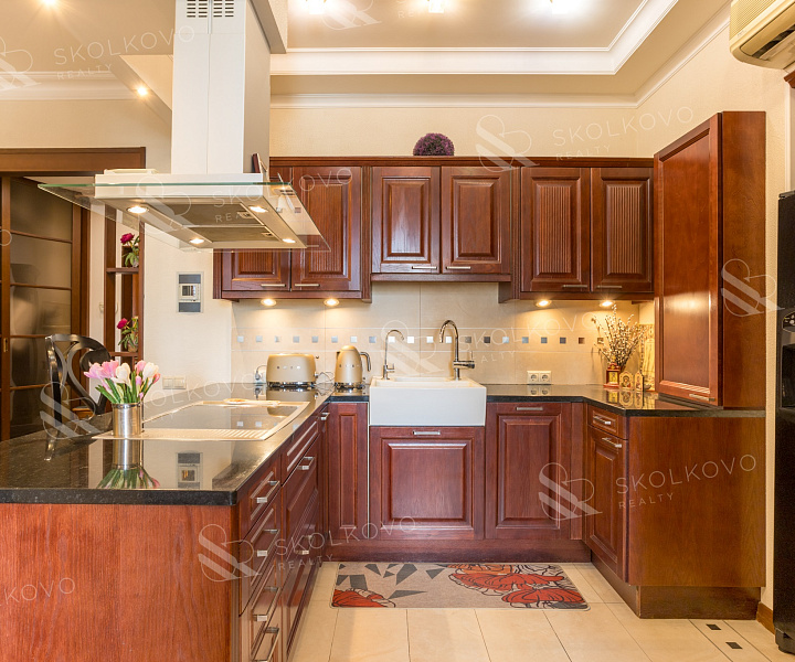 Просторная гостиная объединена с кухней, создавая гармоничное пространство для семейных ужинов и встреч с друзьями.