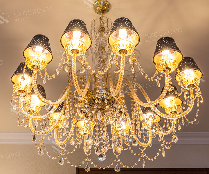 Люксовые хрустальные люстры итальянских брендов Pataviumart в гостиных и спальне создают атмосферу роскоши.