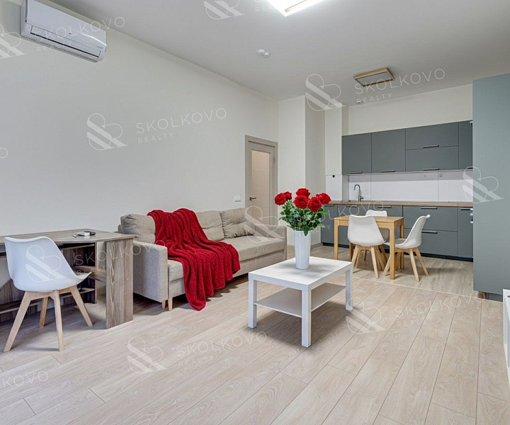 С высотой потолков более 3 метров, квартира наполняет пространство светом и создаёт ощущение свободы. Она укомплектована всей необходимой мебелью и бытовой техникой: духовой шкаф, микроволновая печь, варочная панель, холодильник, посудомоечная и стиральная машина, а также кондиционеры для комфортного климата в любое время года.
