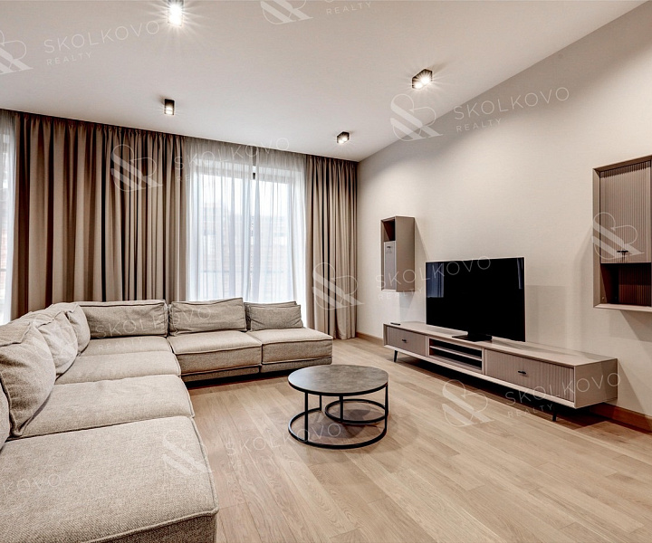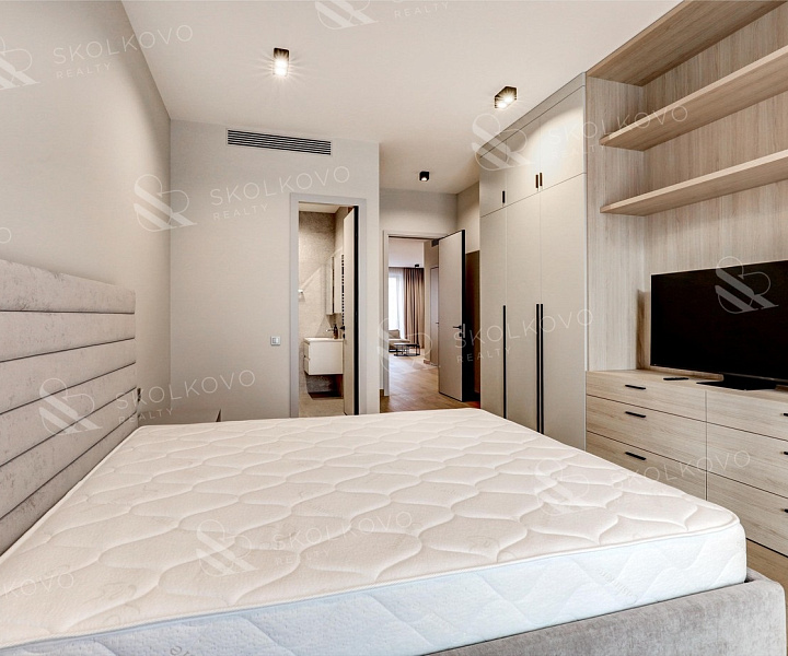 Интерьер квартиры оформлен в современном дизайнерском стиле, выполнен качественный ремонт, а также имеется вся необходимая для комфортного проживания мебель и бытовая техника. Кухонный гарнитур оснащен посудомоечной машиной и духовым шкафом, что облегчит процесс приготовления еды.