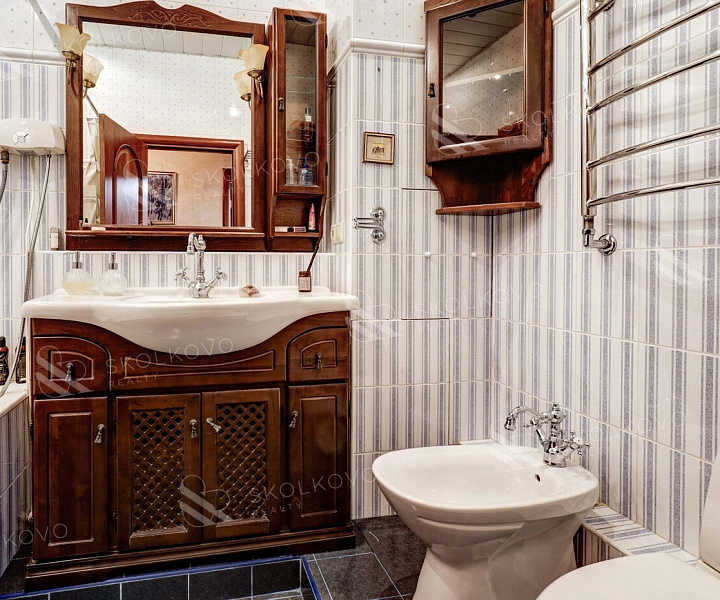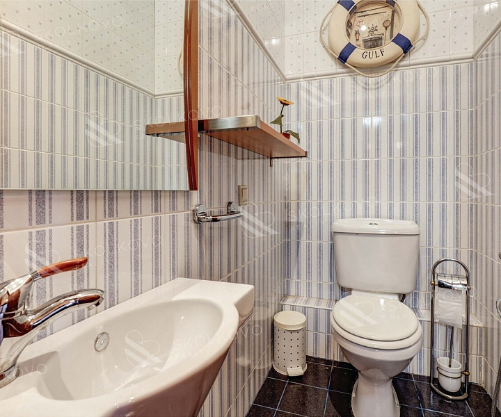 В квартире имеется современная кухня, оборудованная встроенной техникой, включая посудомоечную машину и фильтр для питьевой воды. Удобство также добавляют стиральная машина и кондиционеры в каждой комнате. Здесь предусмотрены два санузла, один из которых оснащен ванной.