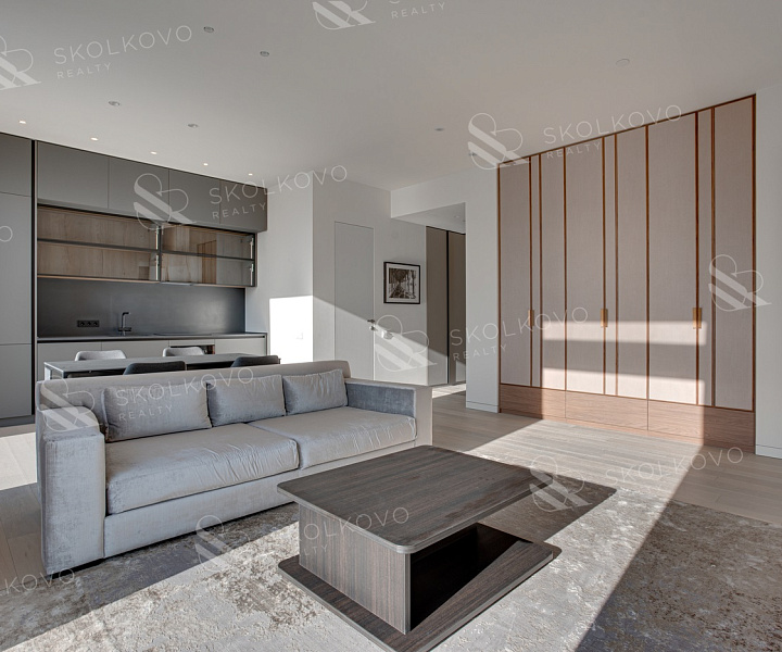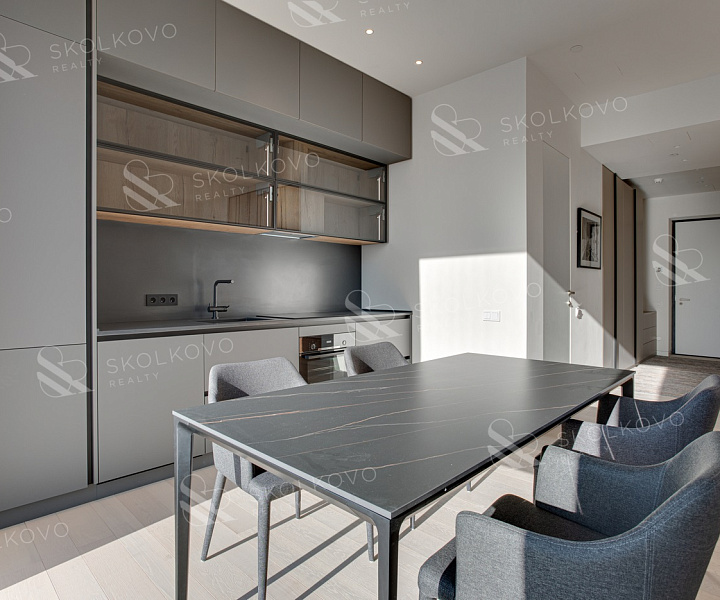 Мебель и техника: Квартира полностью укомплектована современной дизайнерской мебелью и встроенной бытовой техникой премиум-класса. Кухня оснащена всем необходимым для комфортного приготовления пищи.