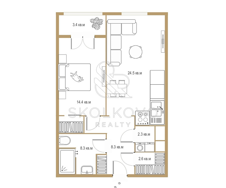 2-х комнатная квартира площадью 63 кв.м.