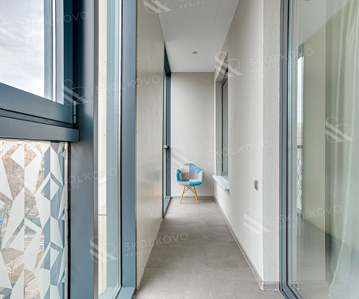 Лоджия включает в себя два окна с входом из гостиной. Окна ориентированы на запад, что обеспечивает яркое естественное освещение в течение дня.