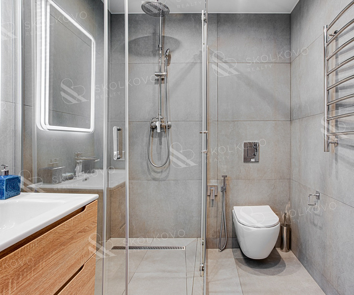 В ванной комнате предусмотрена функциональная душевая кабина.