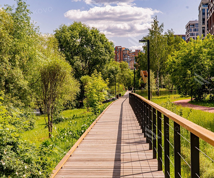 Клубные дома находятся в своем просторном ландшафтном парке 16 га. А это: 8 га цветущего пространства, подобранного так, чтобы парк оставался красивым круглый год, 8 детских площадок в концепции KID`S LAB, спортивные площадки по стандартам FIT LAB для активного отдыха на свежем воздухе, благоустроенная набережная длиной 2 км и площадью 8 га вдоль реки Раменки - для прогулок, уединения или занятия спортом. Именно здесь, не выезжая за пределы города, можно обрести свой источник энергии и вдохновения.